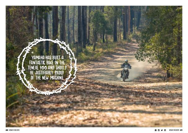 " YAMAHA HAS BUILT A FANTASTIC BIKE IN THE TENERE 700 AND SHOULD BE JUSTIFIABLY PROUD OF THE NEW MACHINE 40 KIWI RIDER