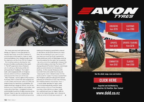 roads drying, fuel tank brimmed and the TFT