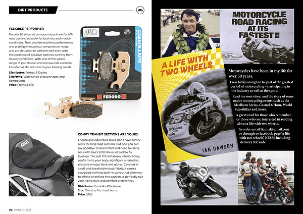 To order email fkmnzl @ gmail. com or through or facebook page‘ A life with two wheels’. NZ $ 55 Including delivery NZ wide.