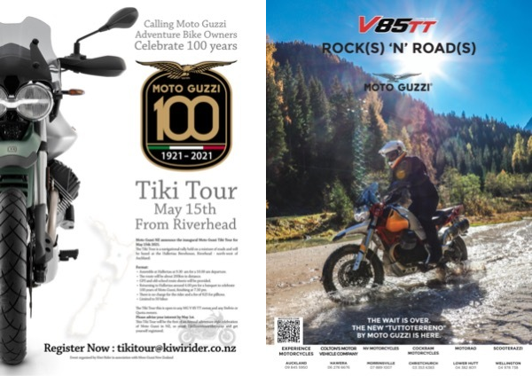EXPERIENCE MOTORCYCLES AUCKLAND 09 845 5950 COLTON ’ S MOTOR VEHICLE COMPANY HAWERA 06 278 6676 NV MOTORCYCLES MORRINSVILLE 07 889 1007 COCKRAM MOTORCYCLES CHRISTCHURCH 03 353 6383 MOTORAD LOWER HUTT 04 382 8011 SCOOTERAZZI WELLINGTON 04 978 738 THE WAIT IS OVER . THE NEW “ TUTTOTERRENO ” BY MOTO GUZZI IS HERE . MOTOGUZZI . COM