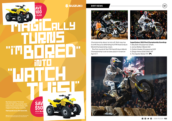 T & Cs : Offer applies to new Suzuki LT-Z50 and LT-Z90 only during April 2022 . At participating dealers only or while stocks last .