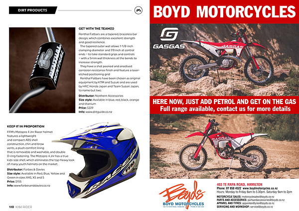 Distributor : Northern Accessories Size style : Available in blue , red , black , orange and titanium Price : $ 229 Info : www . dirtguide . co . nz