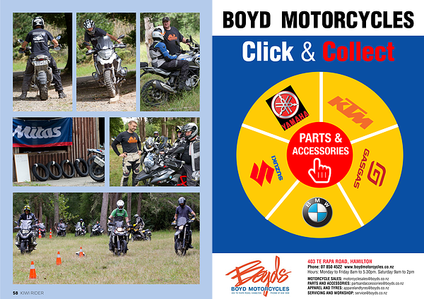 Phone : 07 850 4522 www . boydmotorcycles . co . nz Hours : Monday to Friday 8am to 5.30pm . Saturday 9am to 2pm