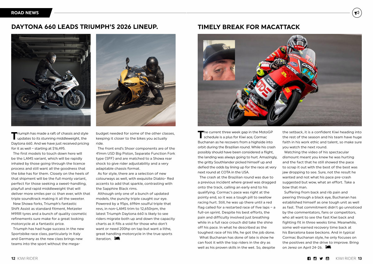 DAYTONA 660 LEADS TRIUMPH’ S 2026 LINEUP.
