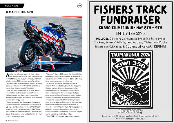 Aprilia has released a very limited edition piece of motorcycle art. This comes in the form of the Aprilia X 250TH. The 250 moniker alludes to the 250th anniversary of the USA Declaration Of Independence, hence the livery being used at the recent COTA Grand Prix of the United States round of MotoGP. Sure, it is very flag waving in its look, which raised a few eyebrows as it comes from an Italian marque but it was such a stunning weekend at COTA for Aprilia that is all seemed to work amazingly well. If you are not of the flag waving livery type, don’ t discount this special edition as simply a US-style paint job. It is way more than that. If you are contemplating spending US $ 150,000 on a new track weapon, read on … Besides, you could do a custom wrap and still enjoy the fruit on this 240hp sculpture.