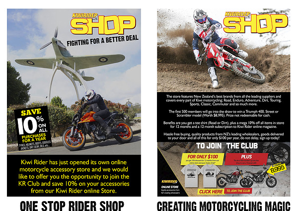 Kiwi Rider has just opened its own online motorcycle accessory store and we would like to offer you the opportunity to join the KR Club and save 10 % on your accessories from our Kiwi Rider online Store.