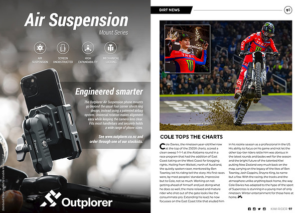 Cole Davies, the nineteen year-old Kiwi now at the top of the 250SX charts, scored a clean sweep 1-1-1 at the Alabama round in a race program that had the addition of East Coast taking on the West Coast for bragging rights. Hailing from Waitoki, north of Auckland, the quietly spoken racer, mentored by Ben Townley, let his riding tell the story. His first races were, by most peoples’ standards, impressive but to Cole, not so much. Working on not getting ahead of himself and just doing what he does so well, the more relaxed and mature rider who shot out of the gate looks like the consummate pro. Extending his lead, he now focusses on the East Coast title that eluded him in his rookie season as a professional in the US. His ability to focus on his game and not let the other top-tier riders rattle him was obvious in the latest rounds and bodes well for the season and the bright future of the talented Kiwi putting New Zealand very much back on the map, carrying on the legacy of the likes of Ben Townley, Josh Coppins, Shayne King, to name but a few. With the racing, the tracks and the atmosphere unlike anything back home, the way Cole Davies has adapted to the hype of the sport of Supercross is stunning in a young man of only nineteen. Winter entertainment for those here at home.