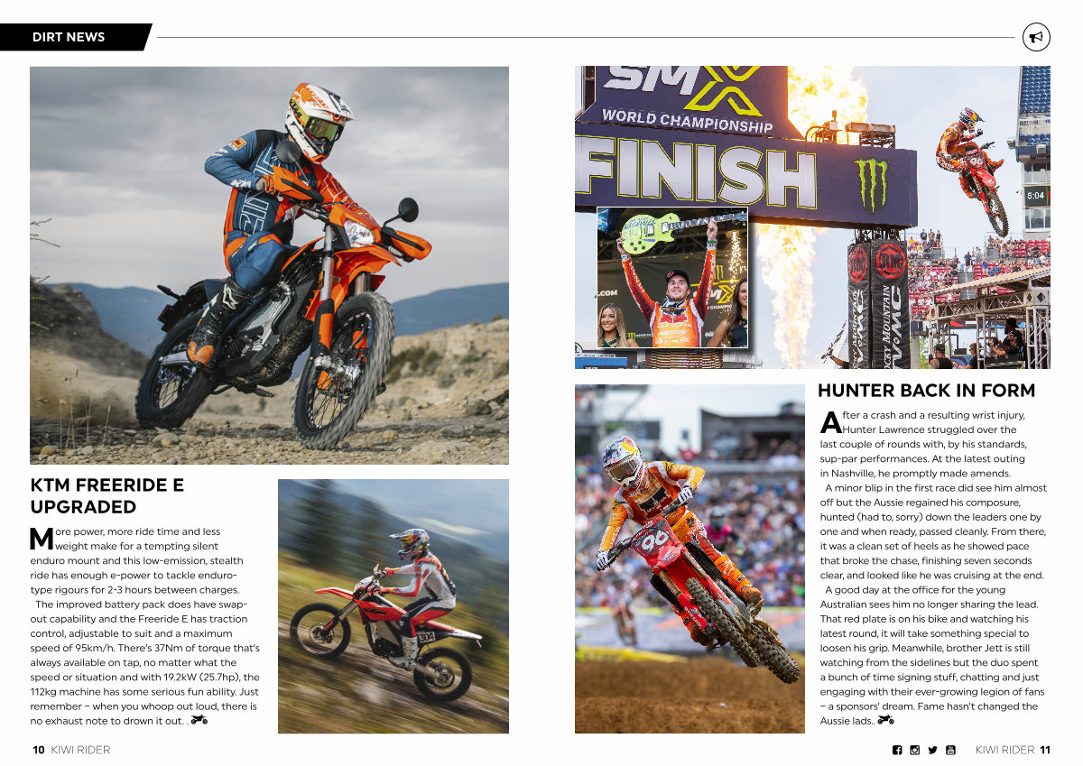 More power, more ride time and less weight make for a tempting silent enduro mount and this low-emission, stealth ride has enough e-power to tackle endurotype rigours for 2-3 hours between charges. The improved battery pack does have swapout capability and the Freeride E has traction control, adjustable to suit and a maximum speed of 95km / h. There’ s 37Nm of torque that’ s always available on tap, no matter what the speed or situation and with 19.2kW( 25.7hp), the 112kg machine has some serious fun ability. Just remember – when you whoop out loud, there is no exhaust note to drown it out..