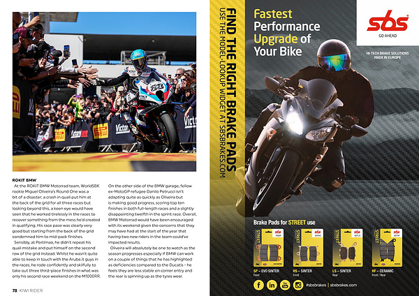 ROKIT BMW At the ROKiT BMW Motorrad team, WorldSBK rookie Miguel Oliveira’ s Round One was a bit of a disaster; a crash in quali put him at the back of the grid for all three races but looking beyond this, a keen eye would have seen that he worked tirelessly in the races to recover something from the mess he’ d created in qualifying. His race pace was clearly very good but starting from the back of the grid condemned him to mid-pack finishes. Sensibly, at Portimao, he didn’ t repeat his quali mistake and put himself on the second row of the grid instead. Whilst he wasn’ t quite able to keep in touch with the Aruba. it guys in the races, he rode confidently and skilfully to take out three third-place finishes in what was only his second race weekend on the M1000RR.