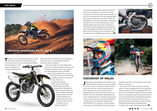 Triumph has been making waves with its new dirt range and doesn’ t look about to rest on its laurels any time soon. Instead, the British brand has gone on the attack to improve an already great bike and work with new FIM and AMA sound regulations. And, yes, there is a full Akrapovič titanium accessory option available … The new model has a new airbox and silencer to optimise airflow, as well as new mapping to work with the new system as a whole and also improve throttle response throughout the rev-range. The 44mm Dell’ Orto throttle body and Athena ECU are even more in sync than ever. Suspension settings that improve mid-stroke performance and a new Exedy clutch, matched to that slick quick-shifter are also included in the 2026 upgrade. With the new model landing in the spring, now is the time to plan for the summer. Pumping out an impressive 48PS at
