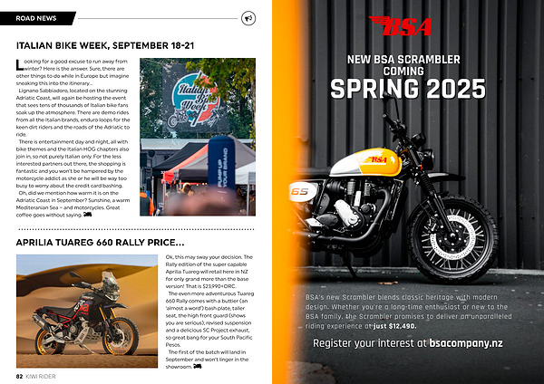 Ok, this may sway your decision. The Rally edition of the super capable Aprilia Tuareg will retail here in NZ for only grand more than the base version! That is $ 23,990 + ORC. The even more adventurous Tuareg 660 Rally comes with a buttier( an‘ almost a word’) bash plate, taller seat, the high front guard( shows you are serious), revised suspension and a delicious SC Project exhaust, so great bang for your South Pacific Pesos. The first of the batch will land in September and won’ t linger in the showroom.