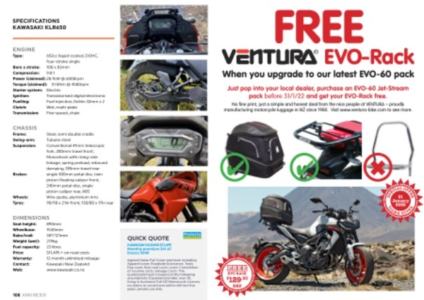 KAWASAKI KLR650 $ 11,495 Monthly premium $ 41.67 Excess $ 500