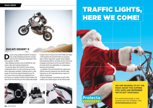 Ducati ’ s long-awaited DesertX concept is now a fully-fledged production model with the first examples expected in the third quarter of 2022 . New Zealand pricing is set at $ 24,995 for the classic rally raid inspired adventurer . Ducati has given the DesertX some serious credentials when it comes to living up to that dune destroyer aesthetic . Rolling stock is a dirt ready 21-inch front wheel followed by an 18- inch unit in the rear . Both are wrapped from the factory in tubeless Pirelli Scorpion Rally STR tyres from the factory , but this sizing will enable a wide choice of tyres once the Pirellis are toast . KYB supplies the DesertX with its springers with a 46mm diameter upside-down Kayaba fork boasting 230mm of travel up the front and a Kayaba monoshock at the rear with 220mm of travel . Both are adjustable in compression , rebound and preload . In addition , the new DesertX has a generous 250mm ground clearance , this should make obstacles on off-road adventures a piece of cake to overcome . Instead of being a Scrambler Ducati in 80s clothes , the chassis layout of the new Ducati