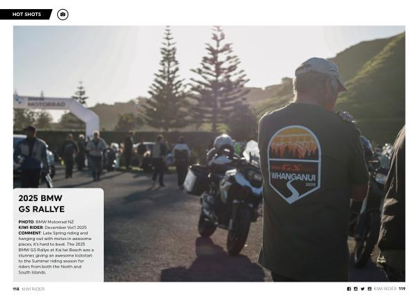 PHOTO: BMW Motorrad NZ KIWI RIDER: December Vol. 1 2025 COMMENT: Late Spring riding and hanging out with mates in awesome places, it’ s hard to beat. The 2025 BMW GS Rallye at Kai Iwi Beach was a stunner, giving an awesome kickstart to the Summer riding season for riders from both the North and South Islands.