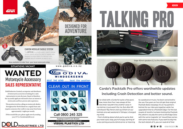Dold Industries Limited, an importer and distributor of motorcycle accessories is looking for a sales representative to join the team. Based in Hamilton, the successful applicant will need to have an interest in motorcycles and have proven sales experience.
