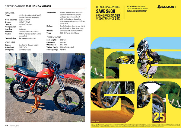 T & Cs: Suzukifest offers are available at participating Suzuki dealers from 1 / 11 / 25 – 31 / 1 / 26, or while stock lasts. Free on-road costs include Warrant of Fitness, six months registration, a full tank of fuel and Tyrewise fee.$ 69.57 / week based on DR-Z4S with RRP of $ 14,899, total amount payable $ 18,088.20, excluding on-road costs, nil deposit, 6.75 % p. a. fixed interest rate, 60-month loan term, total 260 weekly repayments, $ 10.35 PPSR fee, $ 0.50 weekly maintenance fee, $ 130 UDC loan fee and $ 200 dealer origination fee. Suzuki Finance is provided by UDC Finance Limited. Lending criteria, fees and standard terms and conditions apply. Excludes fleet purchases, demo units and all other promotions.
