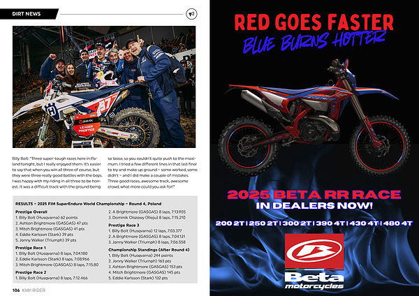 Championship Standings ( After Round 4 ) 1 . Billy Bolt ( Husqvarna ) 244 points 2 . Jonny Walker ( Triumph ) 163 pts 3 . Ashton Brightmore ( GASGAS ) 153 pts 4 . Mitch Brightmore ( GASGAS ) 145 pts 5 . Eddie Karlsson ( Stark ) 132 pts