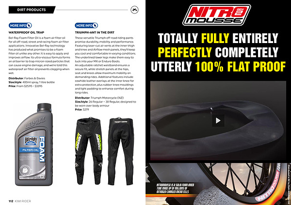 Distributor: Triumph Motorcycle( NZ) Size / style: 26 Regular – 38 Regular, designed to be worn over body armour Price: $ 279