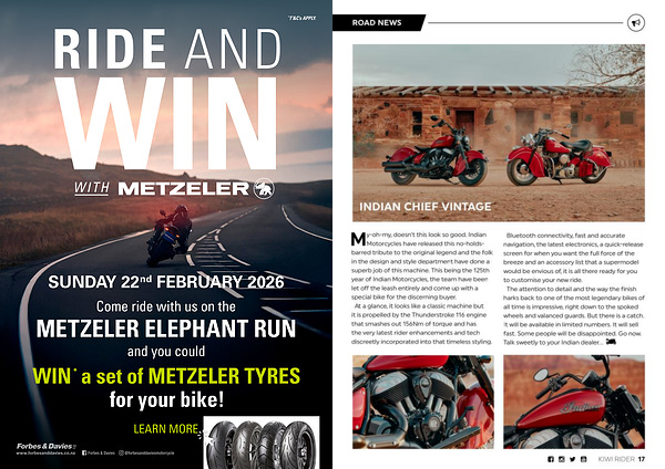 Motorcycles have released this no-holdsbarred tribute to the original legend and the folk in the design and style department have done a superb job of this machine. This being the 125th year of Indian Motorcycles, the team have been let off the leash entirely and come up with a special bike for the discerning buyer. At a glance, it looks like a classic machine but it is propelled by the Thunderstroke 116 engine that smashes out 156Nm of torque and has the very latest rider enhancements and tech discreetly incorporated into that timeless styling.