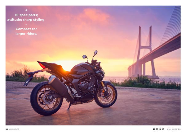 + Hi-spec parts; attitude; sharp styling. – Compact for larger riders.