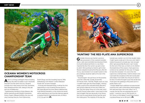 Glendale Arizona saw Hunter Lawrence take possession of the coveted red plate after a calm and controlled second place finish, his fourth bridesmaid finish in a row. More importantly than the runner-up spot is how he did it. Not pushing too hard to get to Ken Roczen, despite knowing that Roczen, after Eli Tomac was involved in an incident earlier in the proceedings, would be right on his tail in the standings.“ Second again— we just focus on the positive. I just felt a little flat; usually, around the 10-minute mark, I feel like,‘ Alright, we’ re on,’ but I couldn’ t quite get into that tonight. I tried to make a push at the end with Kenny [ Roczen ] and closed a little bit on him, but a little too late. The first thing I focus on is the start, and I saw Eli [ Tomac ] down when I came back on the start straight; that was obviously in my favour, but I just focused ahead. Kenny had the sand line really good. The majority of the day, the outside was a better run into that double-triple; I hadn’ t gone inside yet in the race, and I didn’ t realize how good it actually was. Sure enough, after I got passed [ by Roczen ], I went inside for the rest of the race, so that’ s on me. Before the beginning of the season, I had supercross circled on my calendar for this year. I’ m happy to have the red plate— it’ s cool in the 450 Supercross Championship. I want to keep it, but I just want the red plate at the last round, plain and simple. From 2020, the amount of work to be here, it’ s kind of tough to put into words how much goes into getting to this point, but it is pretty damn cool.” Cooper Webb had a solid but not spectacular round for him, with a third place finish keeping him well and truly in the hunt. After 5 of 17 rounds, the top five are separated by just 17 points – Lawrence now on 106, Roczen on 101, Tomac on 98, Webb 91 and Chase Sexton rounding things out on 89 points.