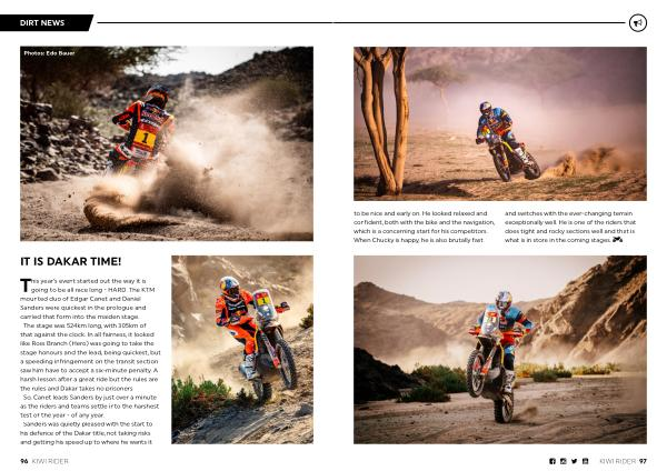 This year’ s event started out the way it is going to be all race long- HARD. The KTM mounted duo of Edgar Canet and Daniel Sanders were quickest in the prologue and carried that form into the maiden stage. The stage was 524km long, with 305km of that against the clock. In all fairness, it looked like Ross Branch( Hero) was going to take the stage honours and the lead, being quickest, but a speeding infringement on the transit section saw him have to accept a six-minute penalty. A harsh lesson after a great ride but the rules are the rules and Dakar takes no prisoners. So, Canet leads Sanders by just over a minute as the riders and teams settle into the harshest test of the year- of any year. Sanders was quietly pleased with the start to his defence of the Dakar title, not taking risks and getting his speed up to where he wants it