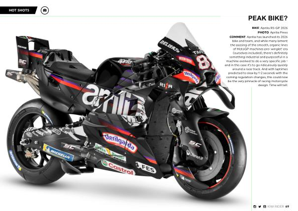 COMMENT: Aprilia has launched its 2026 bike and team, and while many lament the passing of the smooth, organic lines of MotoGP machines pre-’ winglet’ era( ourselves included), there’ s definitely something industrial and purposeful in a machine evolved to do a very specific job- and in this case it’ s to go ridiculously quickly around a race track. And with laptimes predicted to slow by 1-2 seconds with the coming regulation changes, this could now be the very pinnacle of racing motorcycle design. Time will tell.