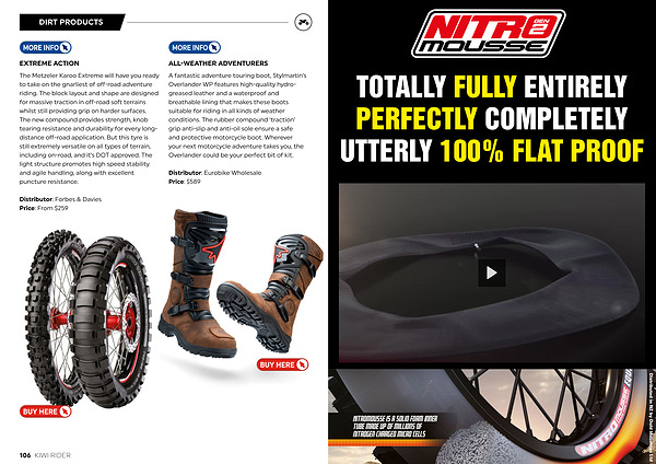 The Metzeler Karoo Extreme will have you ready to take on the gnarliest of off-road adventure riding. The block layout and shape are designed for massive traction in off-road soft terrains whilst still providing grip on harder surfaces. The new compound provides strength, knob tearing resistance and durability for every longdistance off-road application. But this tyre is still extremely versatile on all types of terrain, including on-road, and it’ s DOT approved. The light structure promotes high speed stability and agile handling, along with excellent puncture resistance.