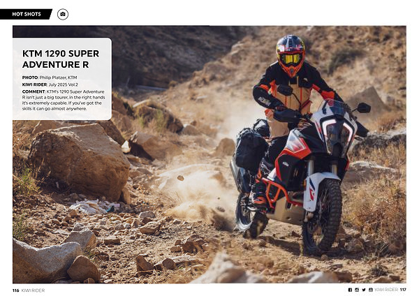 PHOTO: Philip Platzer, KTM KIWI RIDER: July 2025 Vol. 2 COMMENT: KTM’ s 1290 Super Adventure R isn’ t just a big tourer, in the right hands it’ s extremely capable. If you’ ve got the skills it can go almost anywhere.
