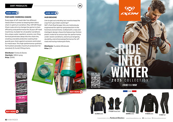 Every type of off-road rider has different needs when it comes to keeping their bike’ s chain in optimum condition. Muc-Off Off-Road Chain Lube aims to change the game in chain efficiency and performance for all your off-road machinery. Suitable for all weather conditions the unique, water repellent, ceramic, non-fling formula penetrates deep into the chain link, creating a durable protective coating that guards your chain against corrosion and metalto-metal wear. This high-performance synthetic formulation provides maximum protection for standard, O, X and Z-Ring chains.