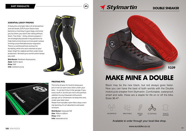This time of year it ’ s hard to keep your pit or trail car park area clean under your bike – it can be tricky in the garage , if you track stuff in . So this pit mat is the perfect addition to any Kawasaki enthusiasts garage , pit or showroom , to keep the area under your bike clear . Made from durable nylon fibre atop a nonslip backing , it ’ s oil absorbent and water resistant .
