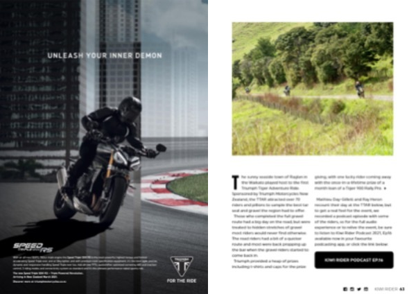 T he sunny seaside town of Raglan in the Waikato played host to the first Triumph Tiger Adventure Ride . Sponsored by Triumph Motorcycles New Zealand , the TTAR attracted over 70 riders and pillions to sample the best tar seal and gravel the region had to offer . Those who completed the full gravel route had a big day on the road , but were treated to hidden stretches of gravel most riders would never find otherwise . The road riders had a bit of a quicker route and most were back propping up the bar when the gravel riders started to come back in . Triumph provided a heap of prizes including t-shirts and caps for the prize giving , with one lucky rider coming away with the once-in-a-lifetime prize of a month loan of a Tiger 900 Rally Pro .