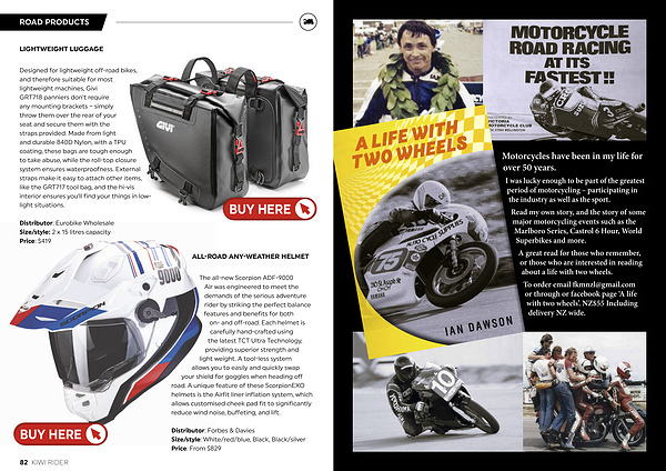 To order email fkmnzl @ gmail. com or through or facebook page‘ A life with two wheels’. NZ $ 55 Including delivery NZ wide.