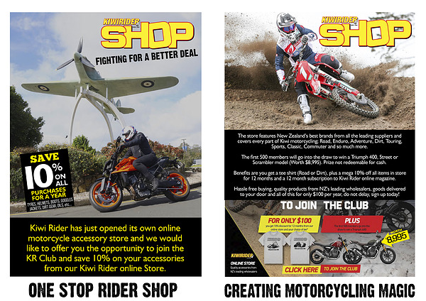 Kiwi Rider has just opened its own online motorcycle accessory store and we would like to offer you the opportunity to join the KR Club and save 10 % on your accessories from our Kiwi Rider online Store.