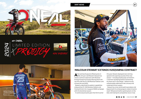 2022 , 30-year-old Malcolm Stewart has inked a contract extension with Rockstar Energy Husqvarna Factory Racing which will see him ride the FC 450 Rockstar Edition until at least the end 2025 . Stewart underlined his podium capabilities onboard the FC 450 Rockstar Edition and finished third in his inaugural 450SX campaign with the brand last season . In continuing to build upon that form earlier this year , Stewart displayed race-winning speed in the opening rounds of the new season – including leading laps at Anaheim 1 and then qualifying fastest and winning his Heat race in San Diego – before he was unfortunately sidelined in late January and underwent knee surgery . Stewart has since continued to go above and beyond with his rehab program , determined to reach 100 percent before getting back on the bike and making his competitive return , fully