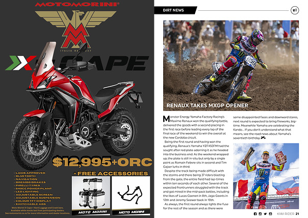Moto Morini X-Cape + Hard Luggage and Crash bars . Available while stocks last from participating dealers . See motomorini . co . nz for more information and dealer locations .
