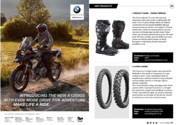 BMW Motorrad Cyclespot BMW Takapuna Auckland 09 486 1136 Experience Motorcycles Kingsland , Auckland 09 845 5950 . Boyd Motorcycles Hamilton 07 838 1209 Mount Motorcycles Mount Maunganui 07 575 4190 Motomart Wellington 04 589 5106 Avon City Motorcycles Christchurch 03 341 3490 McIver & Veitch Dunedin 03 477 0236 Visit www . bmw-motorrad . co . nz or your nearest dealer today . INTRODUCING THE NEW R1250GS WITH EVEN MORE DRIVE FOR ADVENTURE MAKE LIFE A RIDE .