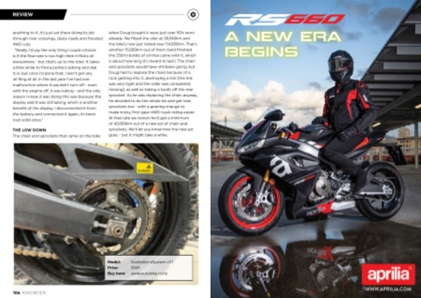 anything to it , it ’ s just sat there doing its job through river crossings , dusty roads and flooded 4WD ruts . “ Really , I ’ d say the only thing I could criticise is if the flow rate is too high then it flicks oil everywhere - but that ’ s up to the rider . It takes a little while to find a perfect setting and dial it in , but once I ’ d done that , I don ’ t get any oil fling at all . In the last year I ’ ve had one malfunction where it wouldn ’ t turn off - even with the engine off , it was lubing - and the only reason I knew it was doing this was because the display said it was still lubing , which is another benefit of the display . I disconnected it from the battery and connected it again , it ’ s been rock solid since .”
