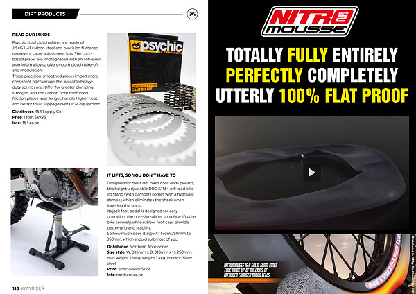 Designed for most dirt bikes 65cc and upwards , this height-adjustable DRC A1164 off-road bike lift stand ( with damper ) comes with a hydraulic damper , which eliminates the shock when lowering the stand . Its jack foot pedal is designed for easy operation , the non-slip rubber top plate lifts the bike securely , while rubber foot caps provide better grip and stability . So how much does it adjust ? From 250mm to 350mm , which should suit most of you .