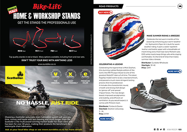 Distributor: Forbes & Davies Size / style: Doohan colourway, S- XL Price: $ 1749