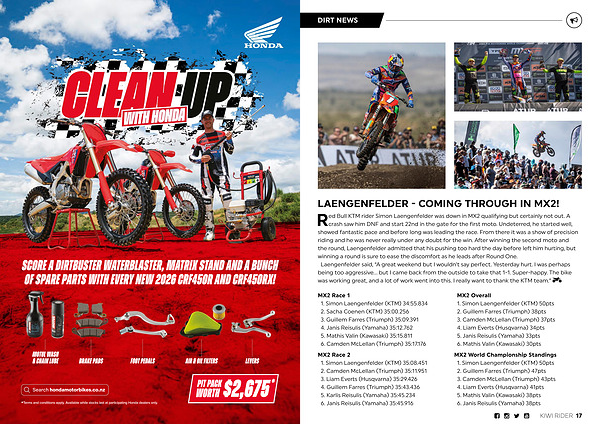 SCORE A DIRTBUSTER WATERBLASTER, MATRIX STAND AND A BUNCH OF SPARE PARTS WITH EVERY NEW 2026 CRF450R AND CRF450RX!