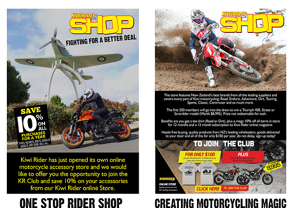 Kiwi Rider has just opened its own online motorcycle accessory store and we would like to offer you the opportunity to join the KR Club and save 10 % on your accessories from our Kiwi Rider online Store.