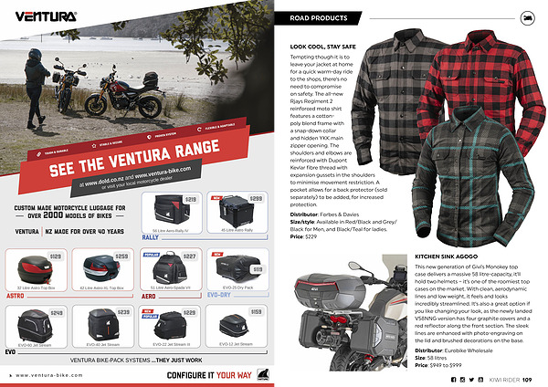 Tempting though it is to leave your jacket at home for a quick warm-day ride to the shops, there’ s no need to compromise on safety. The all-new Rjays Regiment 2 reinforced moto shirt features a cottonpoly blend frame with a snap-down collar and hidden YKK main zipper opening. The shoulders and elbows are reinforced with Dupont Kevlar fibre thread with expansion gussets in the shoulders to minimise movement restriction. A pocket allows for a back protector( sold separately) to be added, for increased protection.