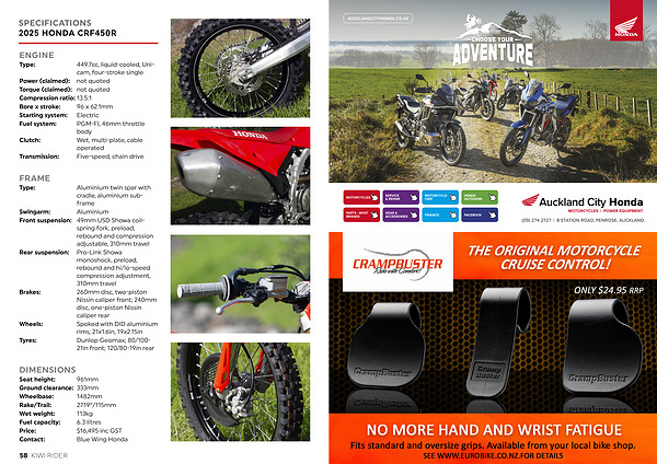 SPECIFICATIONS 2025 HONDA CRF450R