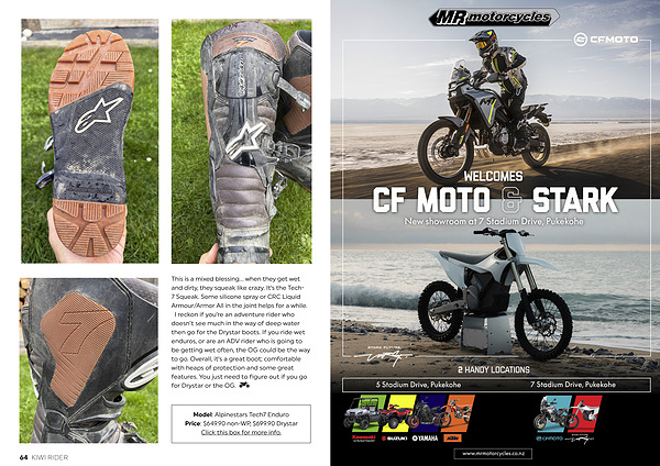 This is a mixed blessing … when they get wet and dirty, they squeak like crazy. It’ s the Tech- 7 Squeak. Some silicone spray or CRC Liquid Armour / Armor All in the joint helps for a while. I reckon if you’ re an adventure rider who doesn’ t see much in the way of deep water then go for the Drystar boots. If you ride wet enduros, or are an ADV rider who is going to be getting wet often, the OG could be the way to go. Overall, it’ s a great boot; comfortable with heaps of protection and some great features. You just need to figure out if you go for Drystar or the OG.