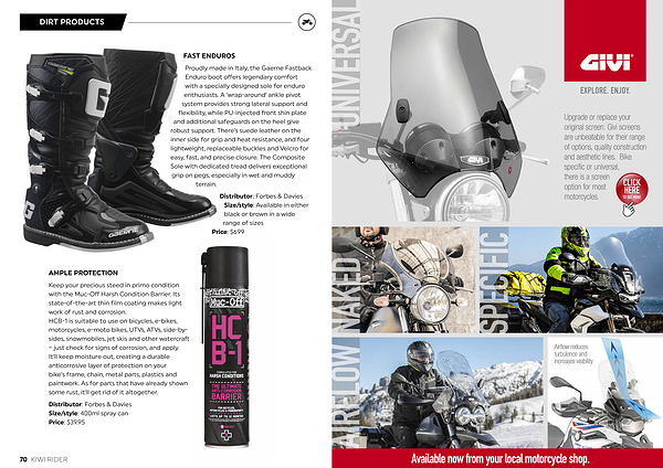 Keep your precious steed in primo condition with the Muc-Off Harsh Condition Barrier. Its state-of-the-art thin film coating makes light work of rust and corrosion. HCB-1 is suitable to use on bicycles, e-bikes, motorcycles, e-moto bikes, UTVs, ATVs, side-bysides, snowmobiles, jet skis and other watercraft – just check for signs of corrosion, and apply. It’ ll keep moisture out, creating a durable anticorrosive layer of protection on your bike’ s frame, chain, metal parts, plastics and paintwork. As for parts that have already shown some rust, it’ ll get rid of it altogether.