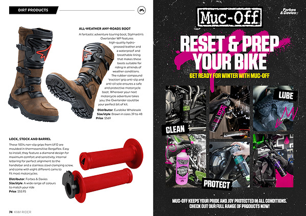 Distributor: Forbes & Davies Size / style: A wide range of colours to match your ride Price: $ 55.95