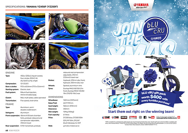 SPECIFICATIONS : YAMAHA YZ450F ( YZ250F )