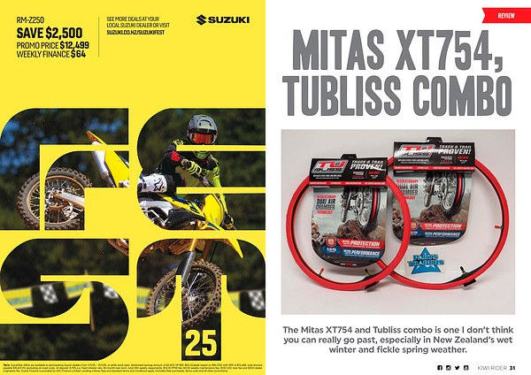 The Mitas XT754 and Tubliss combo is one I don’ t think you can really go past, especially in New Zealand’ s wet winter and fickle spring weather.
