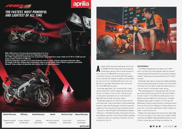 A s parts of Europe are starting to come out of COVID-19 lock-down and international motorcycle racing returns to some sort of normality , with MotoGP serving up some incredible racing in the shortened 2020 season , we jumped at the chance to catch up with a Kiwi at the centre of the MotoGP world , former Dunedin man Paul Trevathan , the crew chief for the KTM factory team . In an average year , this intrepid Kiwi might spend nearly 10 months travelling around the world , on hand in the pits for the Austrian motorcycle manufacturer at more than 20 MotoGP world championship races . Trevathan heads up a small but highly-skilled technical team that is focused on giving talented Spanish racer Pol Espargaro the best possible chance of scoring world championship points . The just-turned 51-year-old Trevathan is based in Druten , in The Netherlands , living there with his wife , Nicole , and their two children , Niek and Eva . It wasn ’ t what he originally thought he ’ d be doing with his life .